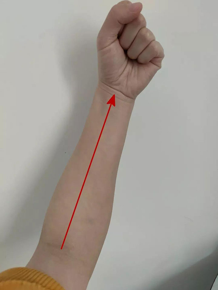 揉心包经的方法也很简单,从肘窝处沿前臂正中向手腕方向缓慢滑动按揉,由肘至手为一遍,每日每侧手臂揉5~10遍即可。
